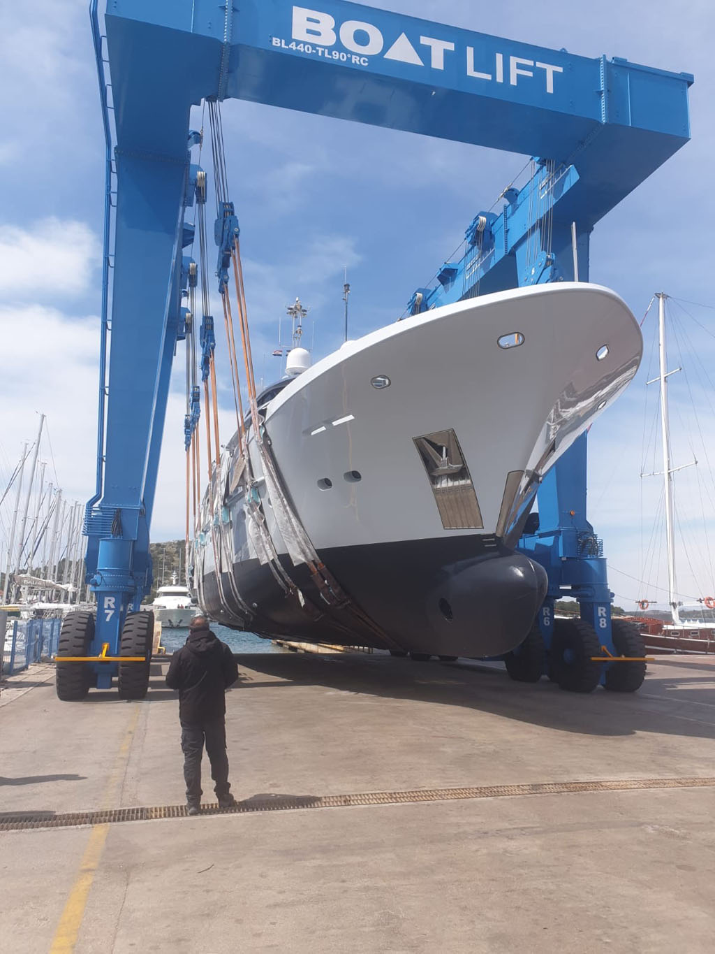 Shipyards that we work in can offer you new travel lifts with adequate insurance according to the value of the yacht.